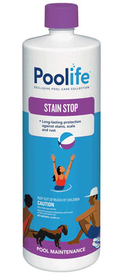 Stop the stain madness! After using Poolife Stain Lift, Stain Stop provides long-lasting protection against stains, scale and rust caused by iron, copper, nickel, manganese, silicon and zinc minerals in your pool water.