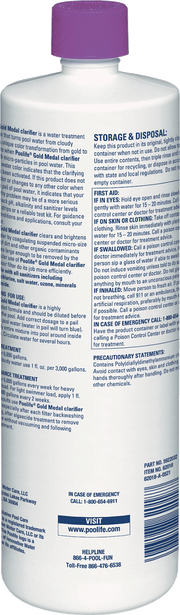 • Our strongest clarifier — Gold Medal Clarifier clears and brightens pool water