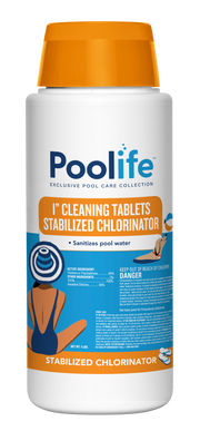 Enjoy up to 1 week of clean, clear pool water! The slow-dissolving, long-lasting tablets kill bacteria, control algae and remove organic contaminants. A slow-dissolving, long-lasting tablet that kills bacteria, controls algae and removes organic contaminants for up to 1 week of clean, clear pool water. When using poolife® Cleaning Tablets Stabilized Chlorinator, shock treat at least once a week using poolife® TurboShock® shock treatment or poolife® Rapid Shock shock treatment. For best results add tablets to a new, clean skimmer, floater or automatic feeder. Always read feeder instructions before use. Use your poolife® 6-Way Test Strips to test the chlorine and pH levels at least twice a week.