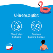 Return green pool water to sparkling blue again—within 24 hours! Whether it’s the start of the season, or if an algae bloom occurs, this all-in-one system destroys bacteria and algae for easy vacuuming.