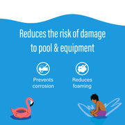• Prevents corrosion of metals, plastic and overall pool surfaces for longer pool-time fun